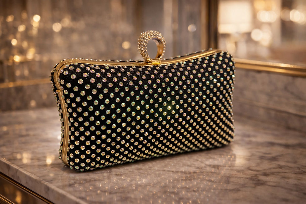 Rhinestone triangular black evening bag