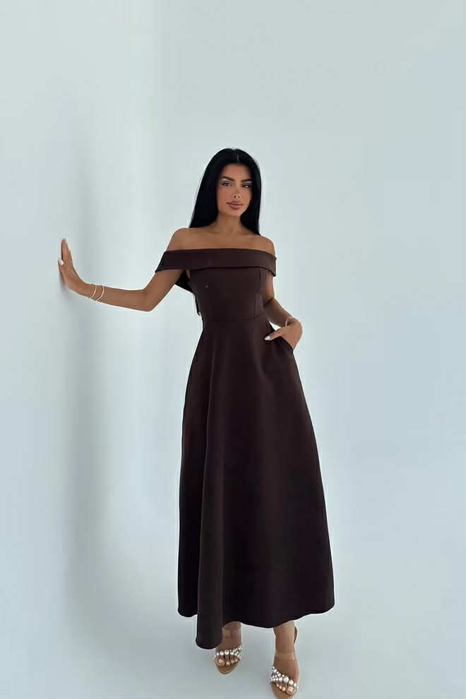 Elena chocolate off shoulder midi dress
