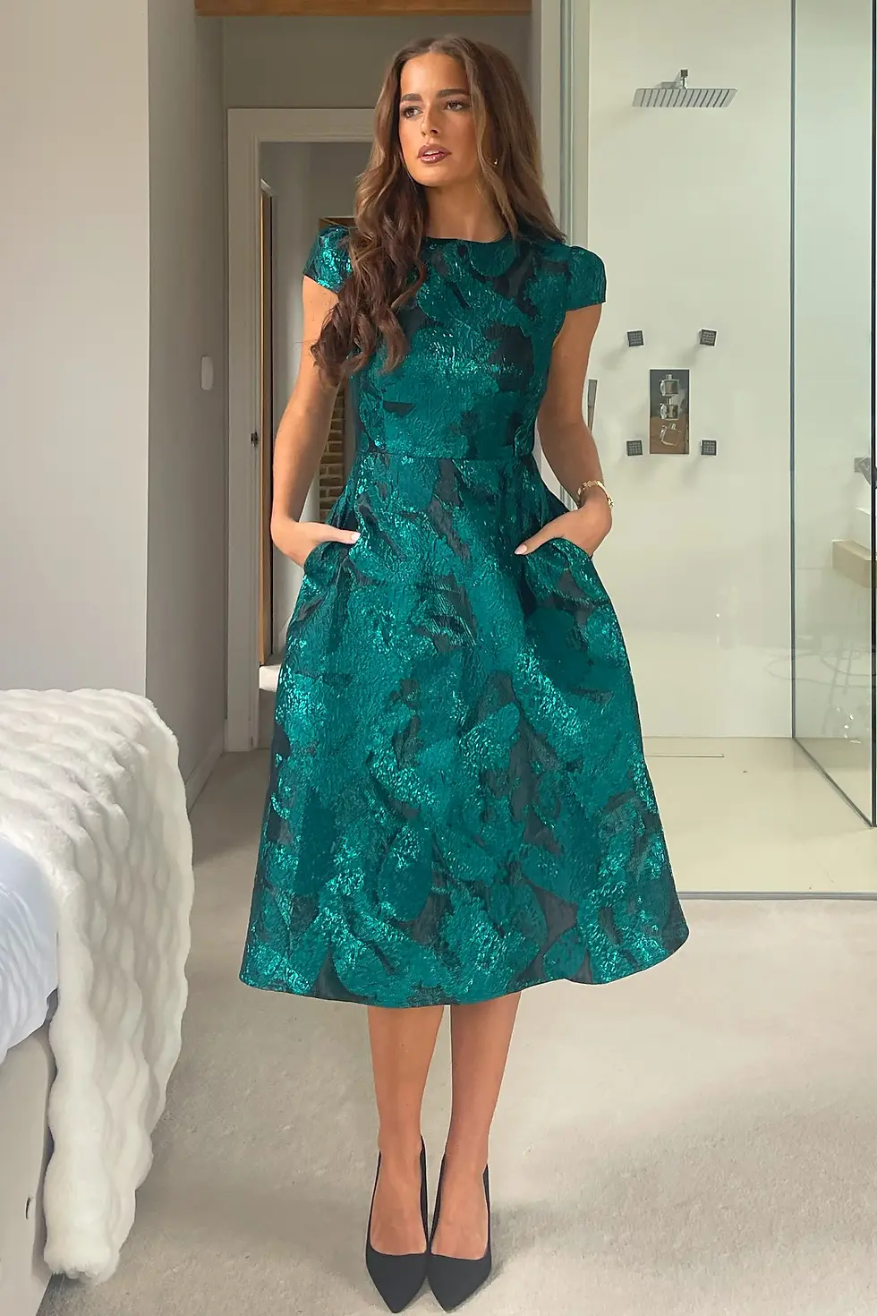 Lara floral jacquard high neck midi dress Green